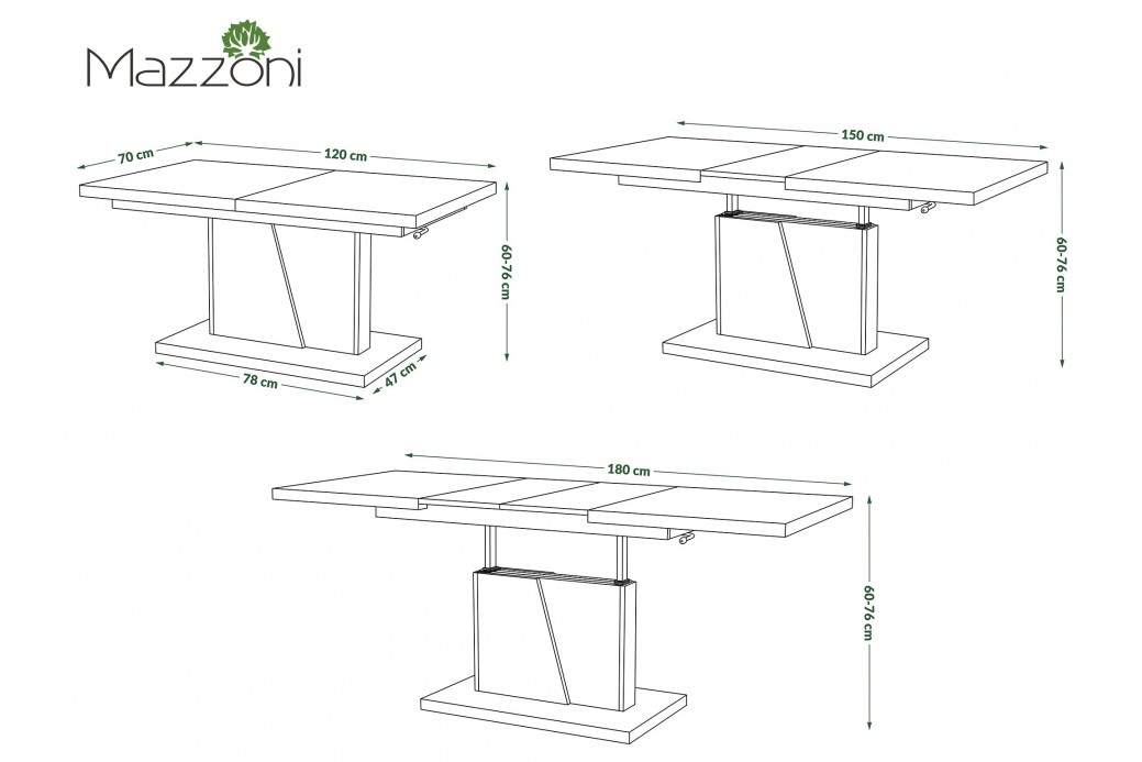 Starszy bliźniak modelu NOIR posiadający funkcję podnoszenia blatu z regulacją wysokości. Jest doskonałym meblem dla osób gustujących w nowoczesnych rozwiązaniach. Dzięki dwóm 30 cm wkładkom jego blat można powiększyć do 150 lub 180 cm! Idealnie sprawdzi się więc w przypadku wszelkiego rodzaju imprez rodzinnych, czy tez spotkań ze znajomymi.