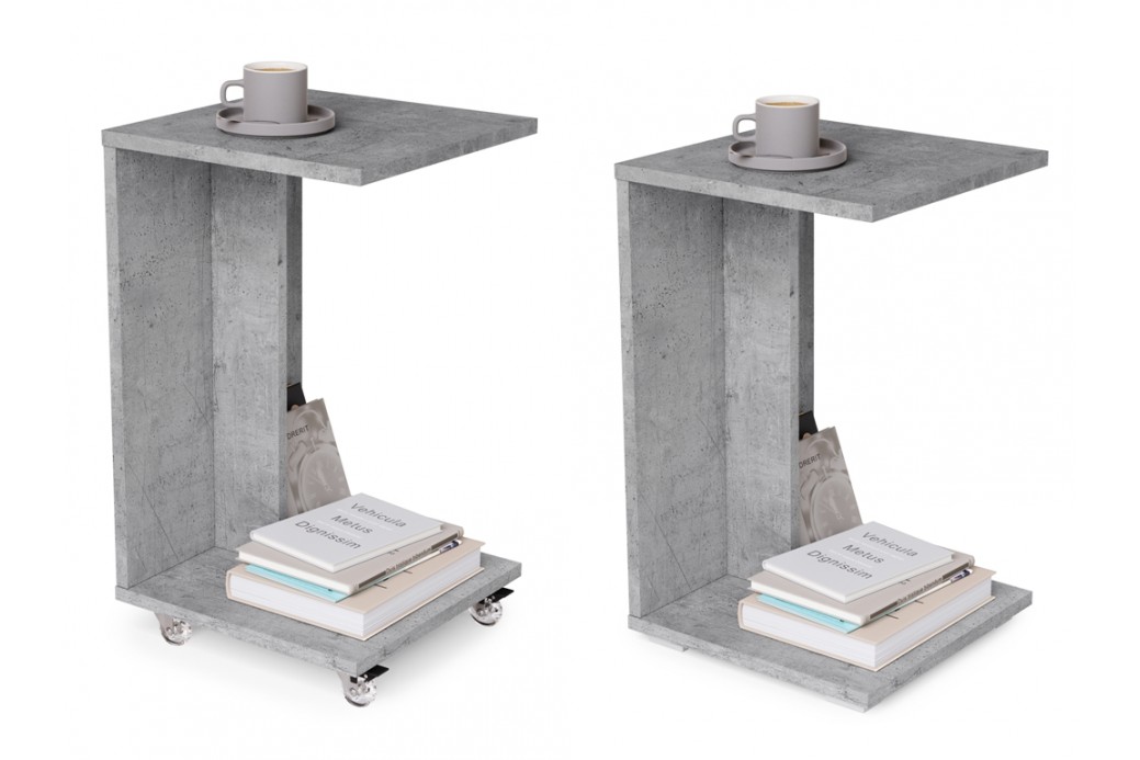 HUGO Beton Millenium - POMOCNIK 2w1 NA KÓŁKACH/NÓŻKACH - MOBILNY STOLIK POMOCNICZY DO SALONU/SYPIALNI/POKOJU DZIECIĘCEGO