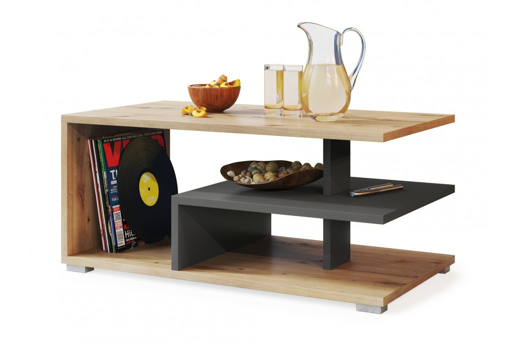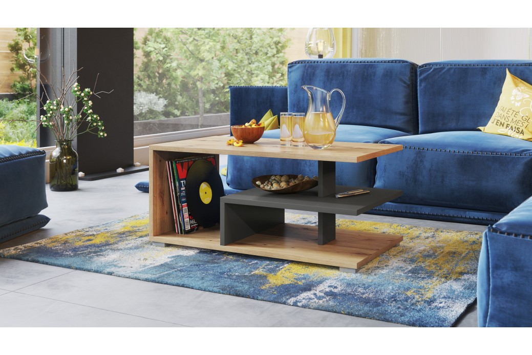 LINK Dąb Artisan/Antracyt (Ciemny Szary) - NOWOCZESNA ŁAWA STOLIK Z PÓŁKĄ