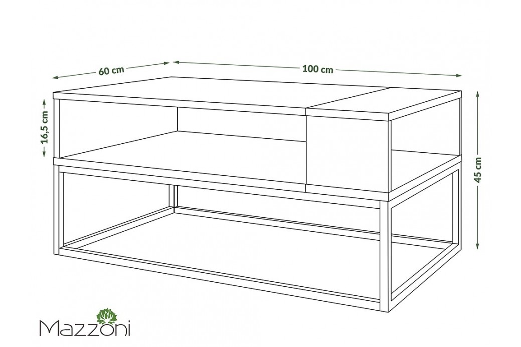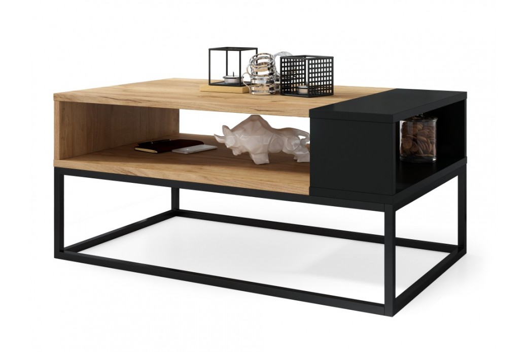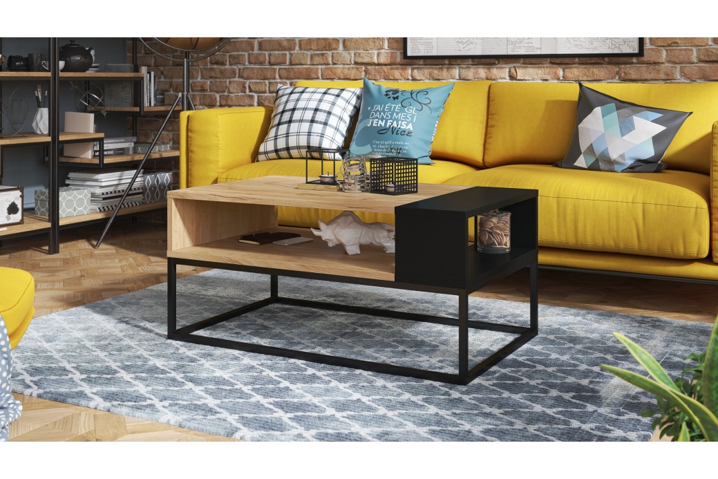 Nowoczesna ława o niepowtarzalnym designie w stylu loftowym, obok której nikt z domowników czy też znajomych nie przejdzie obojętnie. Bardzo dobrze dobrane wymiary gwarantują funkcjonalność oraz przyjemność płynącą z jej użytkowania. Przestronna półka sprawia, że wszystkie potrzebne rzeczy można mieć zawsze w zasięgu ręki, a solidny metalowy stelaż gwarantuje 100% stabilność stolika.