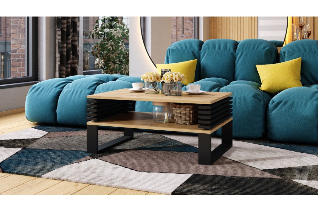 GOKEE S-90 Dąb Artisan/Czarny Mat - NOWOCZESNA ŁAWA STOLIK KAWOWY Z LAMELAMI