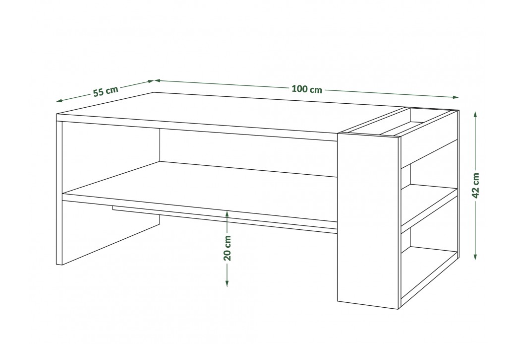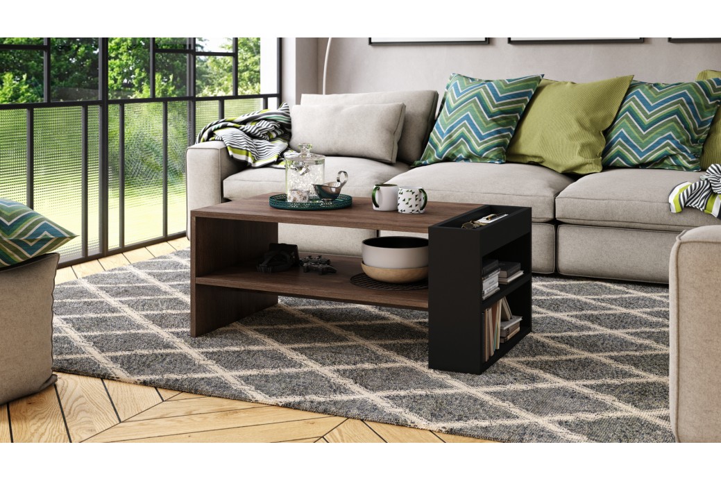 Niezwykle funkcjonalna i zgrabna ława, która została zaprojektowania tak aby sprostać oczekiwaniom najbardziej wymagających użytkowników. Niewielki "przybornik" wkomponowany w blat, pozwoli w łatwy sposób uporządkować przedmioty takie jak np. pilot, okulary czy notes/długopis, a dzięki przestronnej półce pod blatem oraz małemu regałowi z boku, najpotrzebniejsze rzeczy będą zawsze pod ręką. Czego chcieć więcej?.