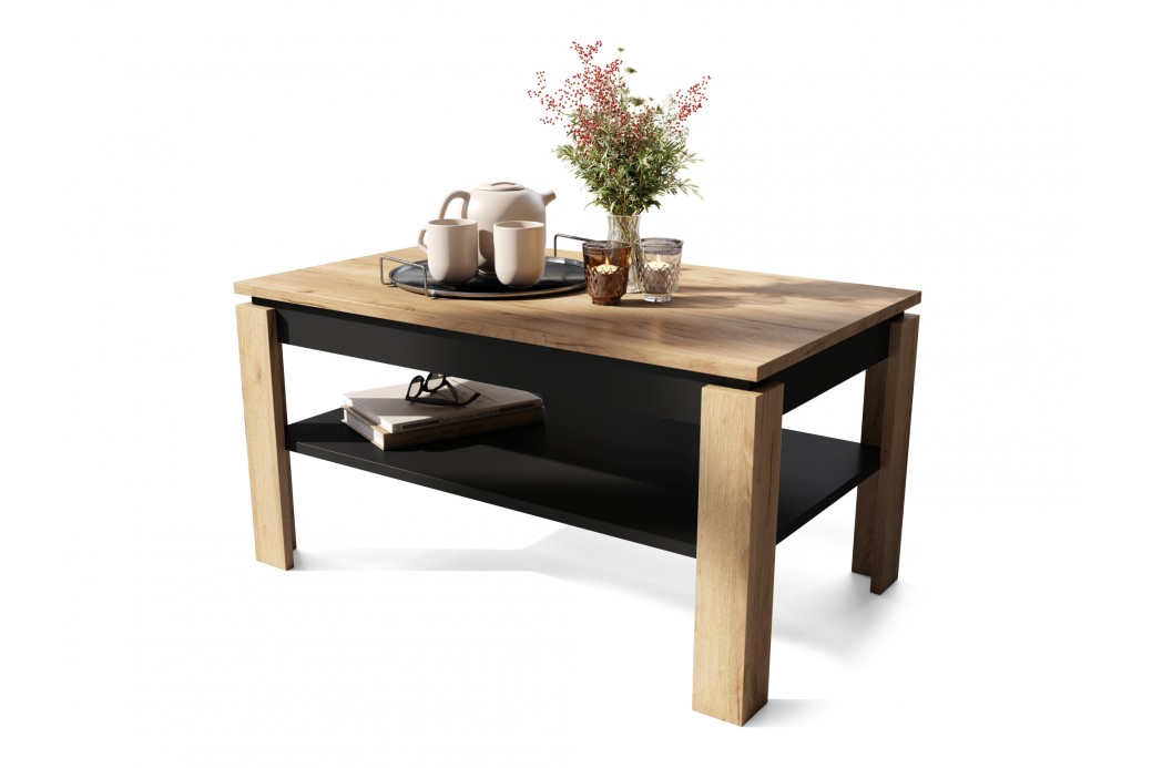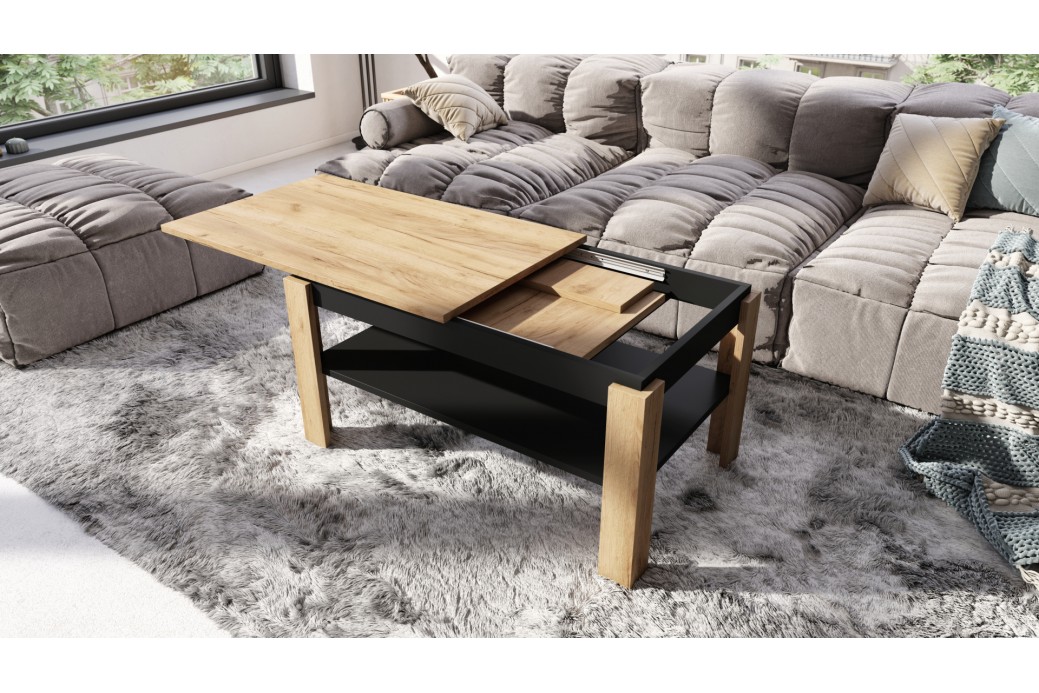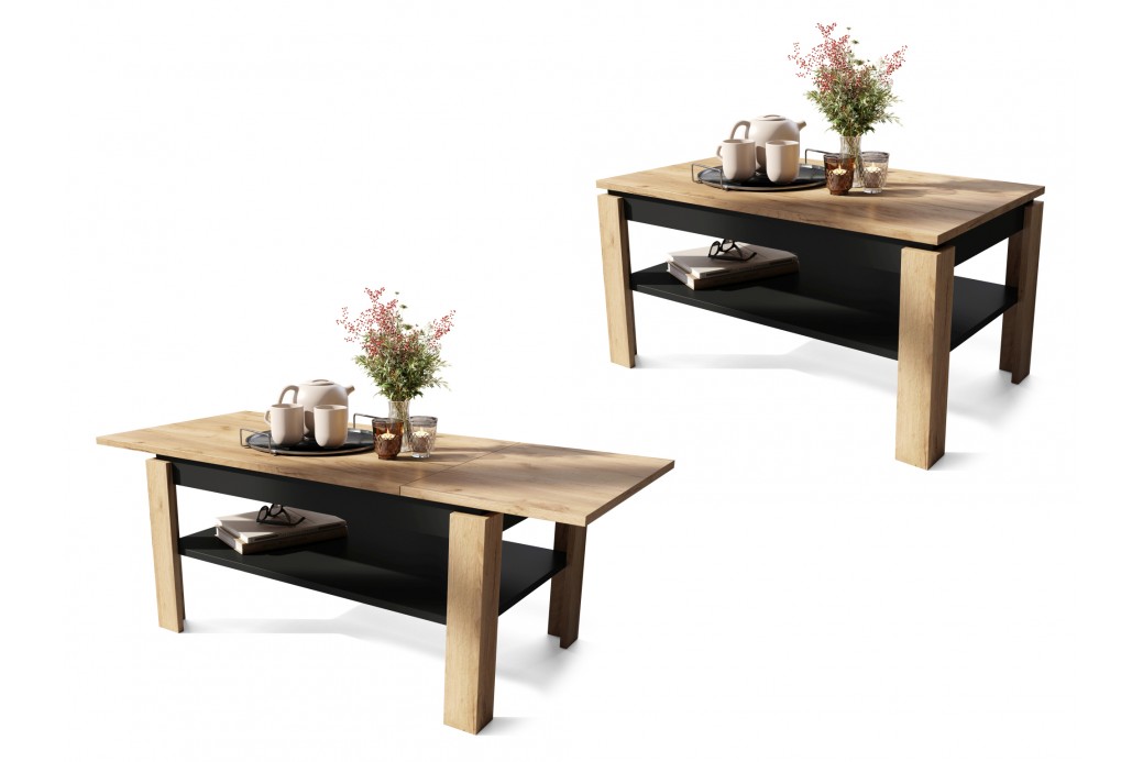 ASTI-R Dąb Craft Złoty/Czarny - nowoczesny stolik kawowy z rozkładanym blatem