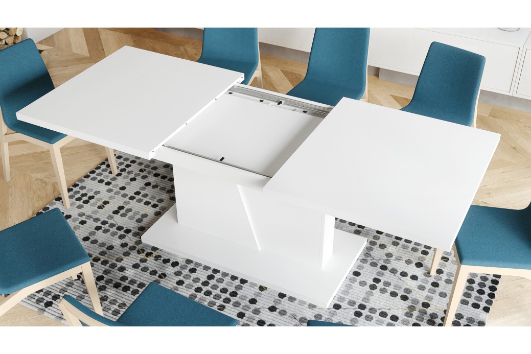 Doskonały stół dla osób gustujących w nowoczesnych rozwiązaniach. Dzięki jednej 58 cm wkładce jego blat można powiększyć do 218 cm (pomogą w tym wysokiej jakości prowadnice synchroniczne). Stół ten doskonale sprawdzi się więc w przypadku wszelkiego rodzaju imprez rodzinnych, czy tez spotkań ze znajomymi. Idealny dla osób wymagających, zwracających uwagę na detale i poszukujących najwyższej jakości - kwintesencja dobrego gustu.