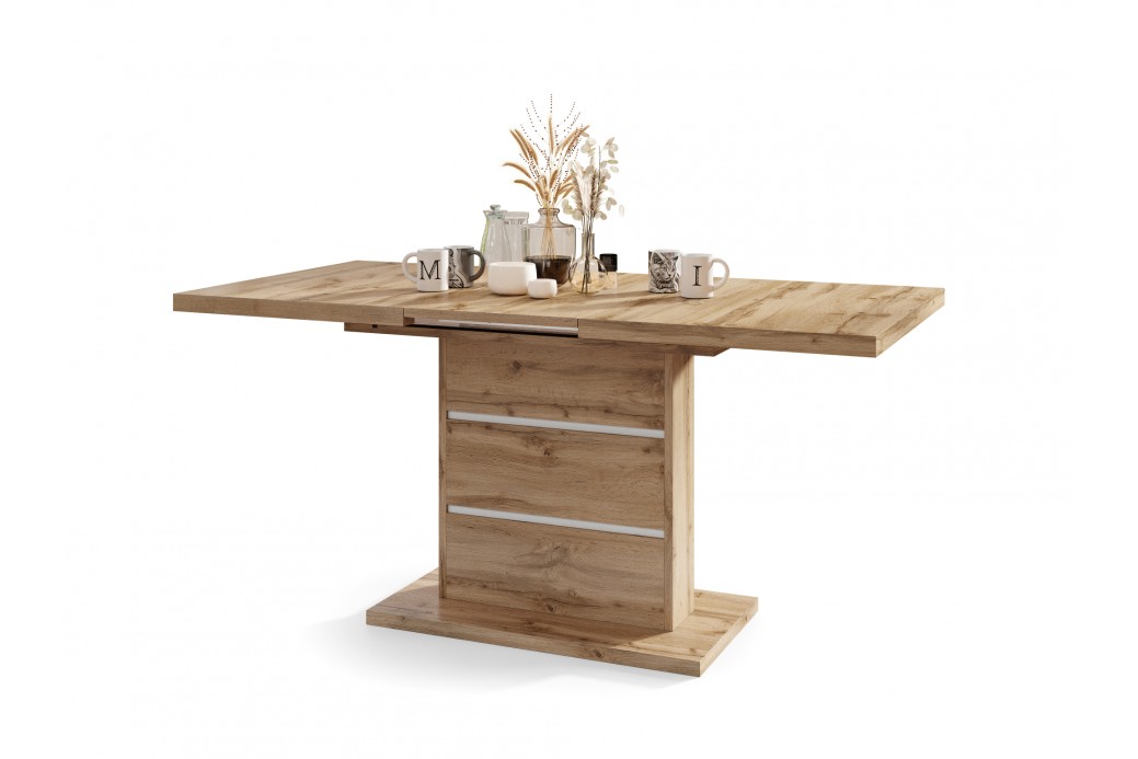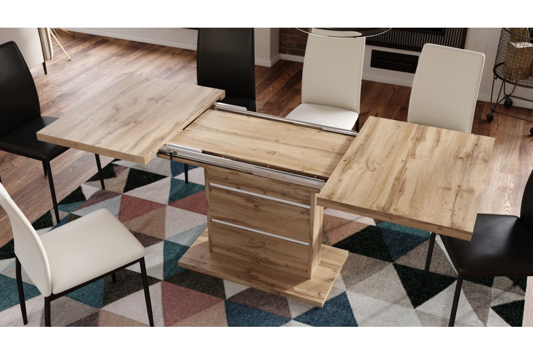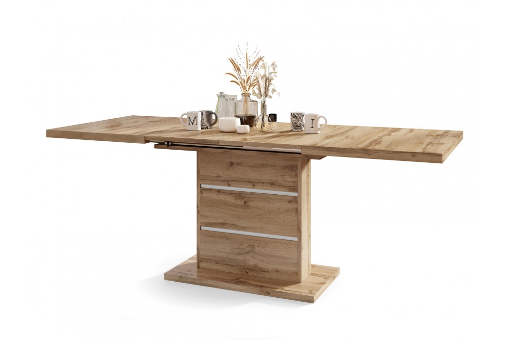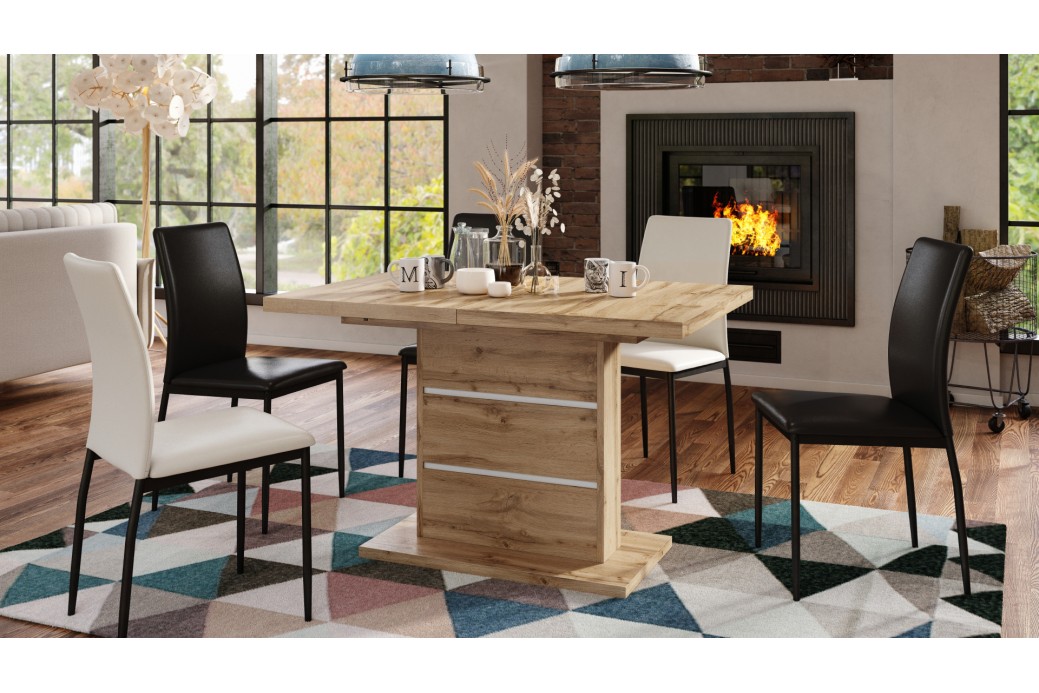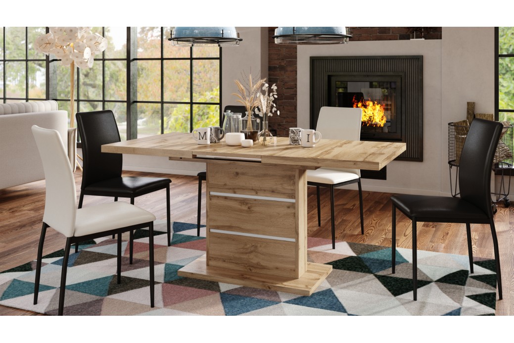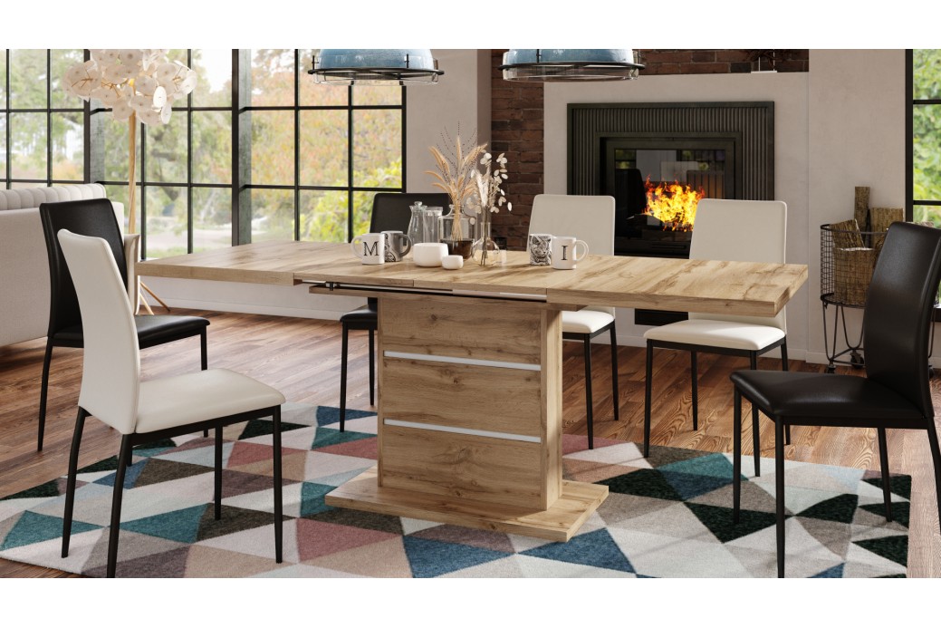 PIANO to doskonały stół dla osób gustujących w nowoczesnych rozwiązaniach. Dzięki dwóm 40 cm wkładkom jego blat można powiększyć do 160 lub 200 cm - jest to bardzo łatwe dzięki zastosowaniu wysokiej jakości prowadnic synchronicznych. Stół ten świetnie sprawdzi się w przypadku wszelkiego rodzaju imprez rodzinnych, czy tez spotkań z przyjaciółmi, a dodatkowo będzie cieszył oko swoim minimalistycznym, ale jednocześnie eleganckim wyglądem.
