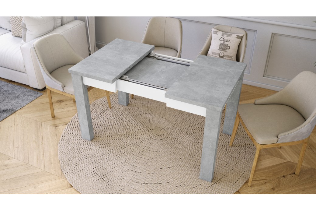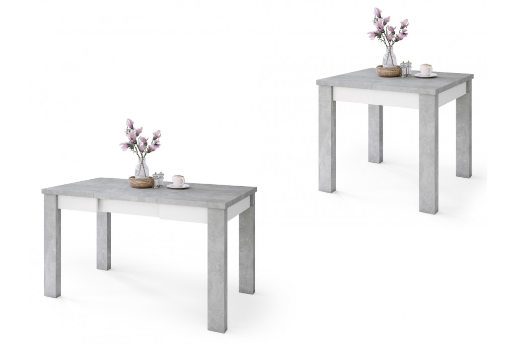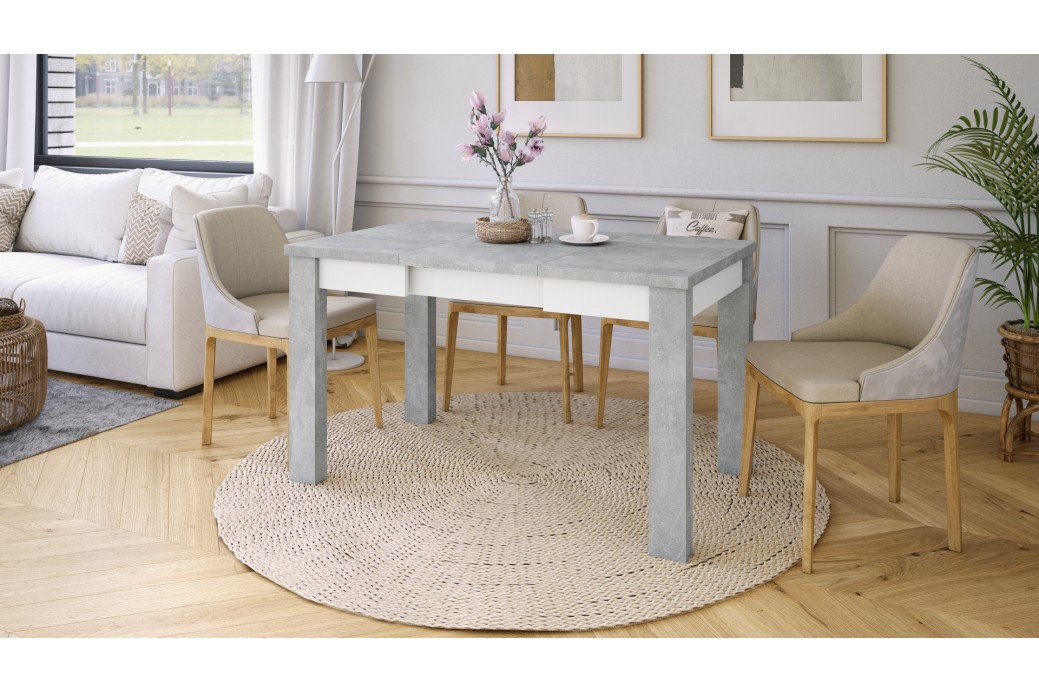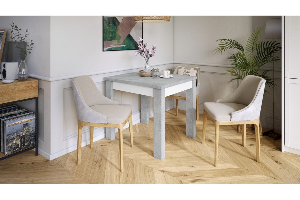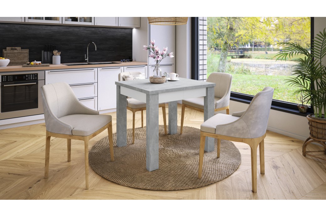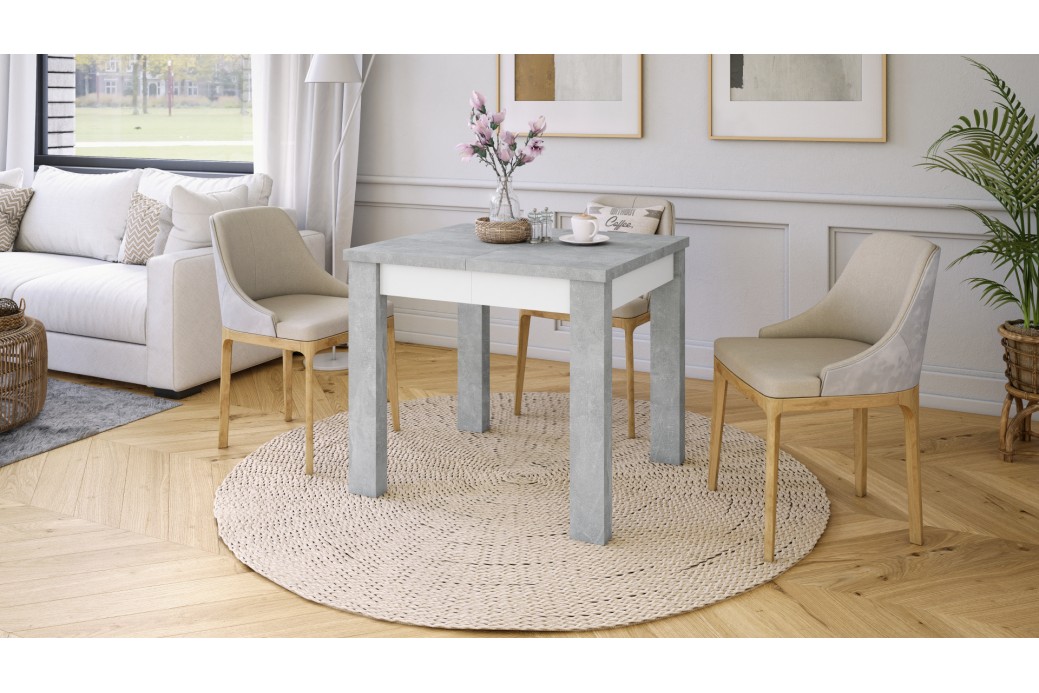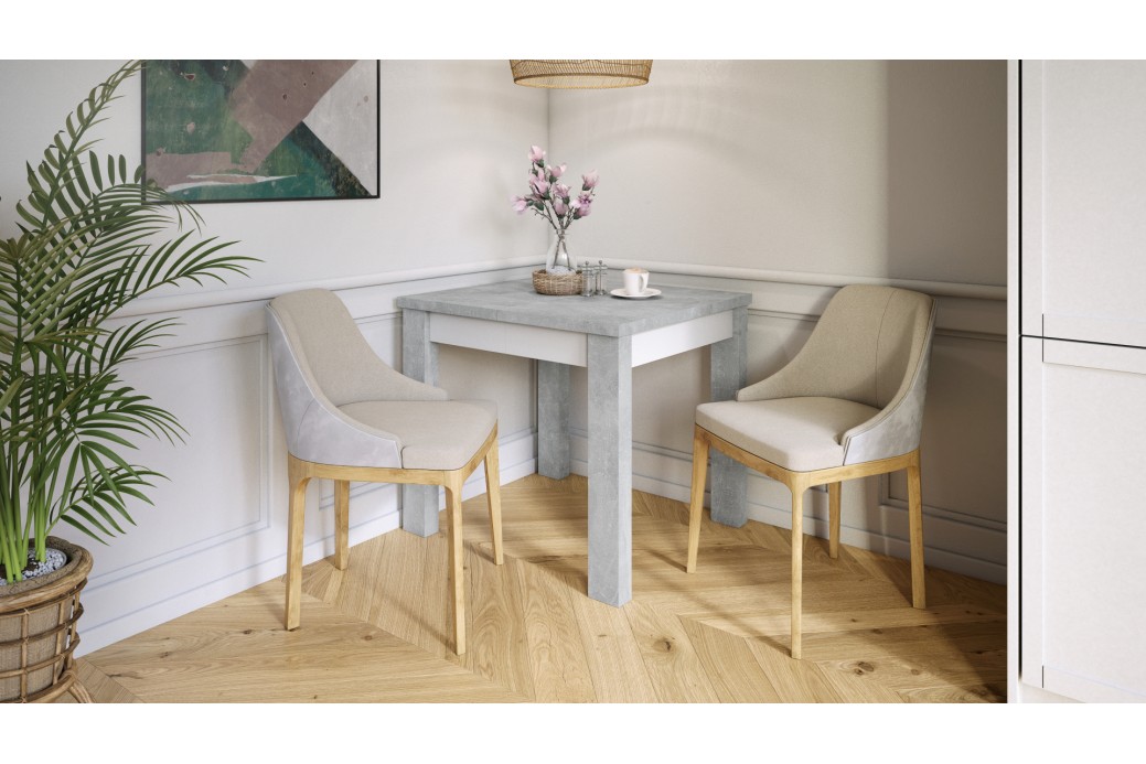 FONTE Beton Jasny Atelier / Biały Mat - KLASYCZNY STÓŁ KUCHENNY/DO SALONU 85x75 ROZKŁADANY DO 130 cm!
