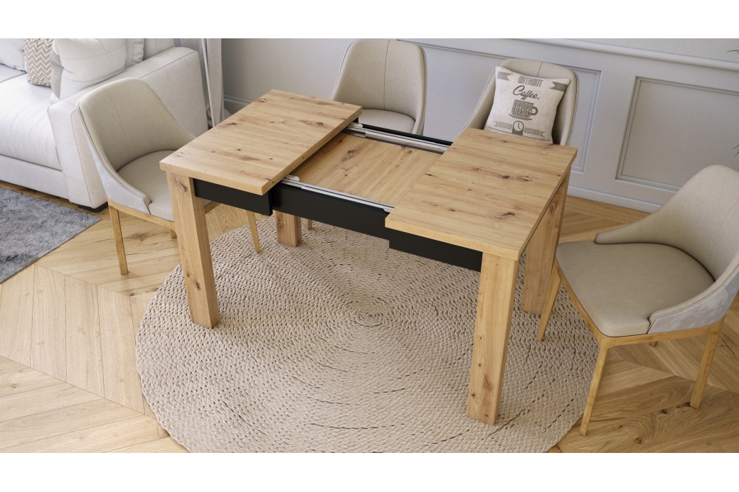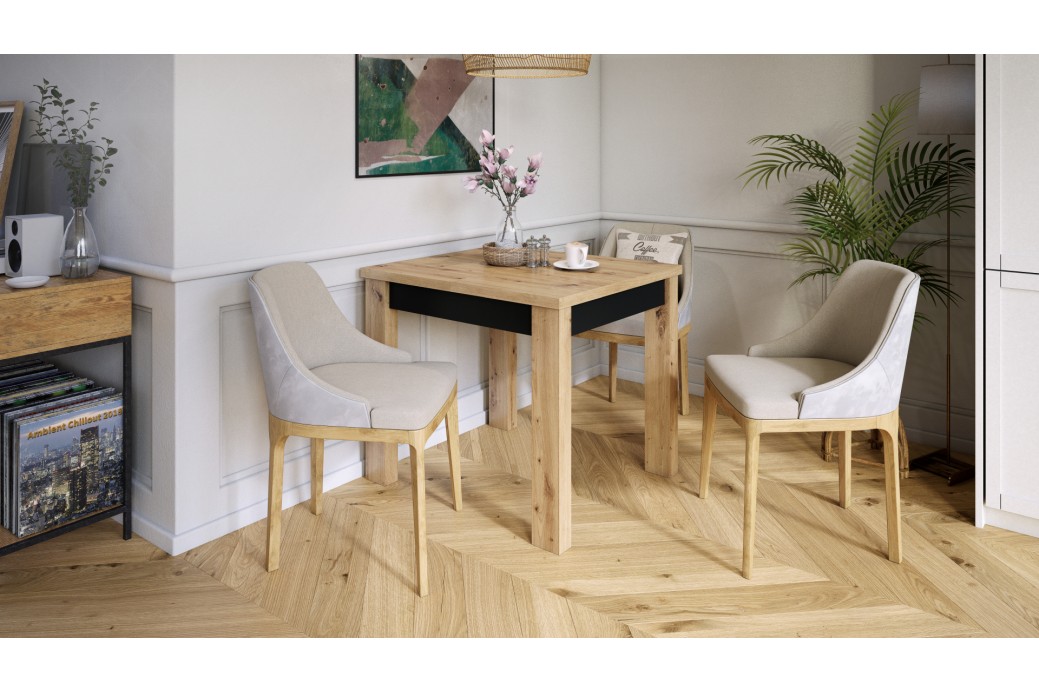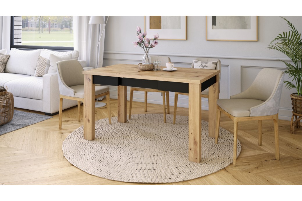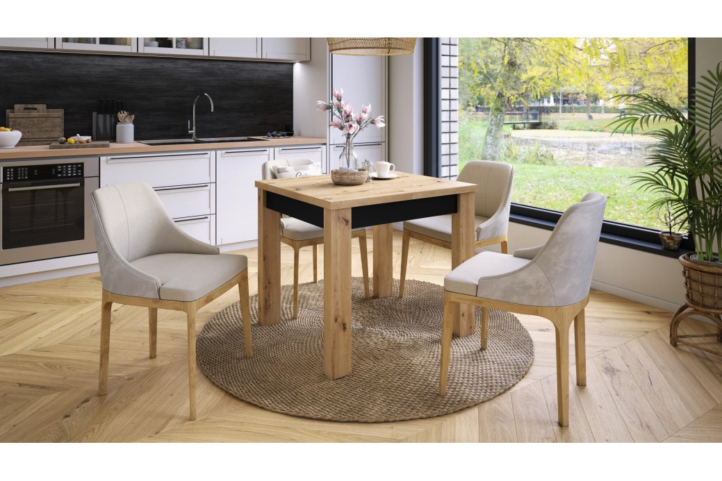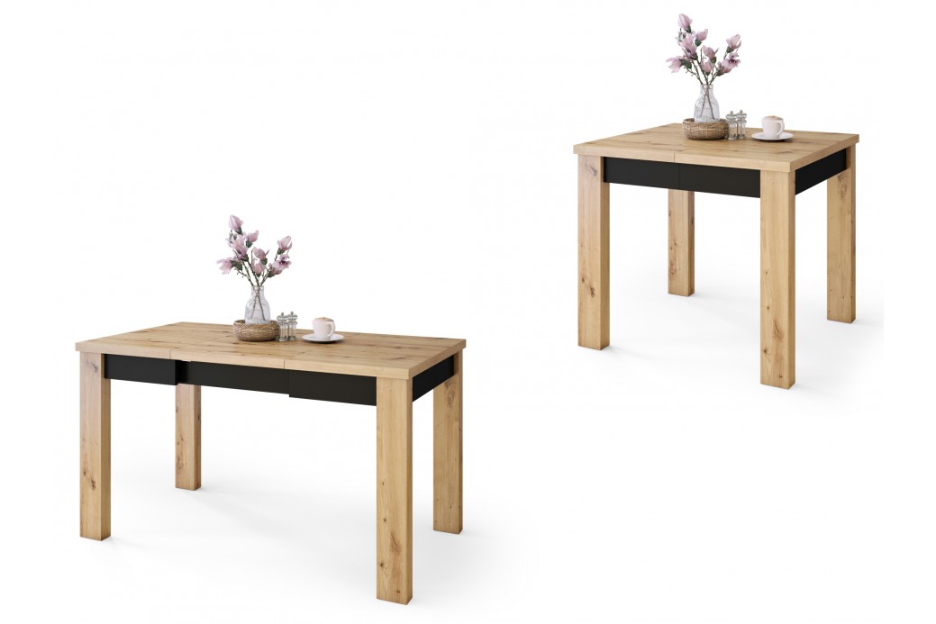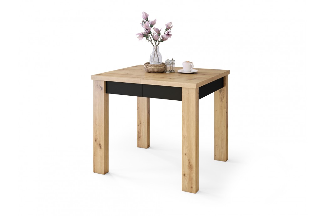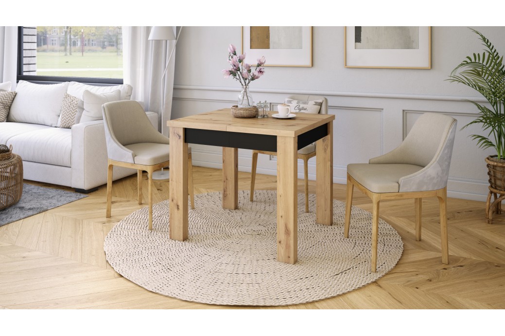 FONTE Dąb Artisan / Czarny Mat - KLASYCZNY STÓŁ KUCHENNY/DO SALONU 85x75 ROZKŁADANY DO 130 cm!
