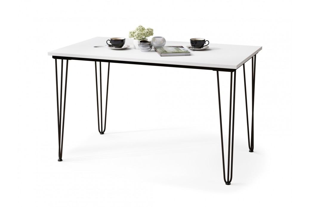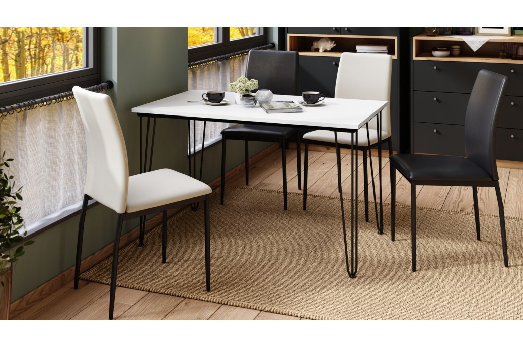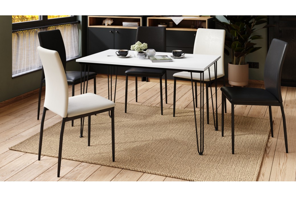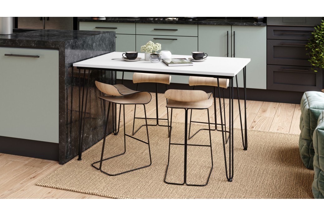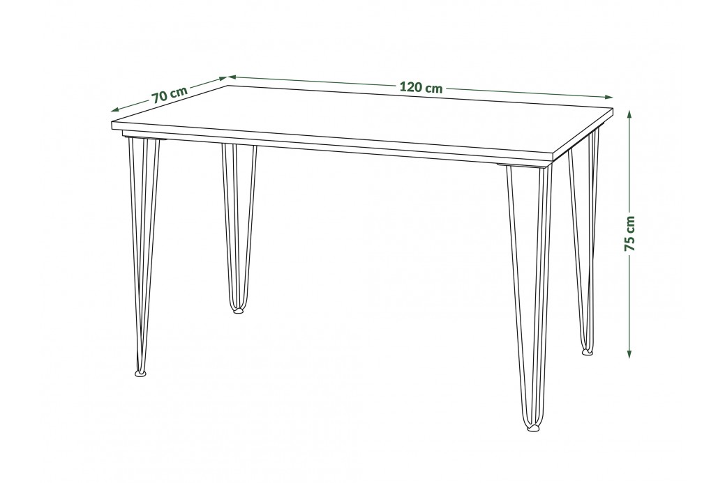 Elegancki stół, który doskonale sprawdzi się zarówno w kuchni, jak i jadalni. Blat ma wymiary 120x70 cm, co zapewnia wystarczającą przestrzeń do wygodnego spożywania posiłków lub pracy przy nim. Jednym z głównych elementów, które wyróżniają ten stół są jego nogi wykonane ze stalowego pręta. Materiał ten zapewnia nie tylko stabilność i wytrzymałość całej konstrukcji, ale również dodaje stylowego charakteru. Dzięki swojemu minimalistycznemu designowi stół HAIRPIN doskonale wpasuje się w wiele różnych wnętrz, zarówno w nowoczesnym, loftowym, industrialnym a nawet klasycznym stylu. Jest to idealny wybór dla osób, które cenią sobie połączenie funkcjonalności i estetyki.