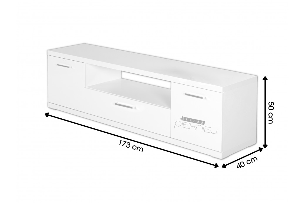 DODATKOWE INFORMACJE Mebel wykonany jest z płyty BOF (40 mm) i płyty wiórowej obustronnie laminowanej w wysokim połysku (16 mm). Fronty mebla wykonane są z płyty MDF w wysokim połysku o grubości 18 mm. Produkt przeznaczony do samodzielnego montażu wraz z dostarczoną instrukcją.